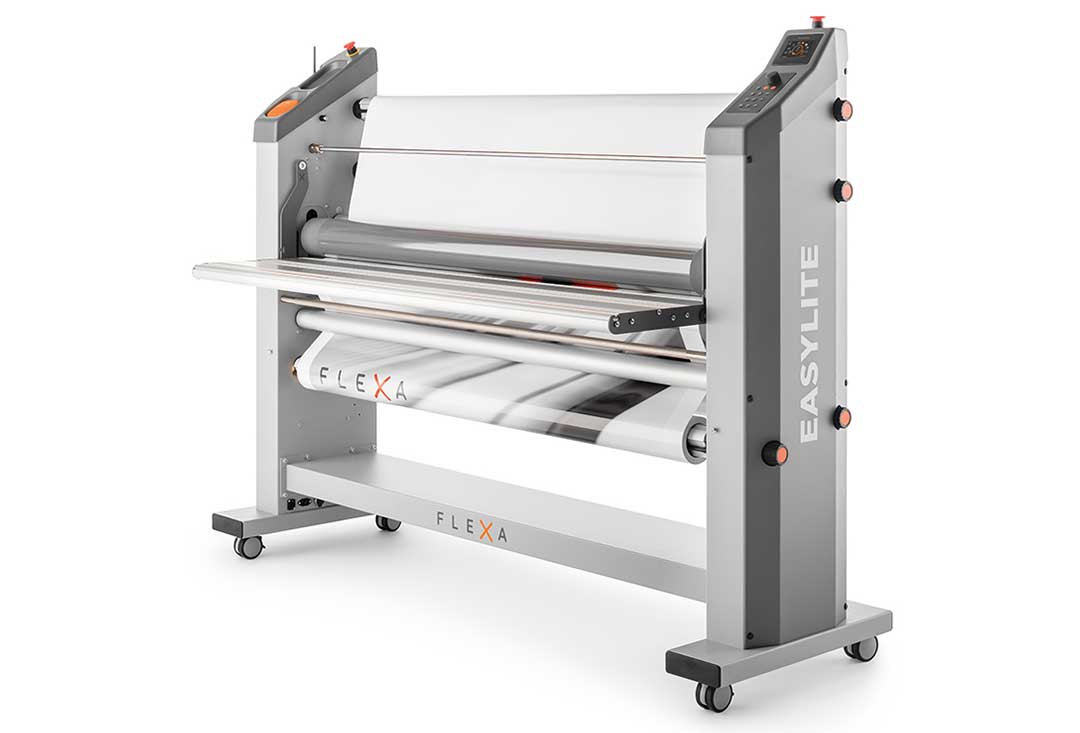 Wir zeigen den neuen Flexa Easy Lite Laminator mit motorgesteuerter oberen Walze und 4 Achsen inkl. Schneidevorrichtung